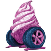 WHIPPY ICE CREAM SERVED WITH BLUE & PINK SHERBERT, BUBBLEGUM & RASPBERRY SAUCE & FIZZY BOTTLE SWEETS